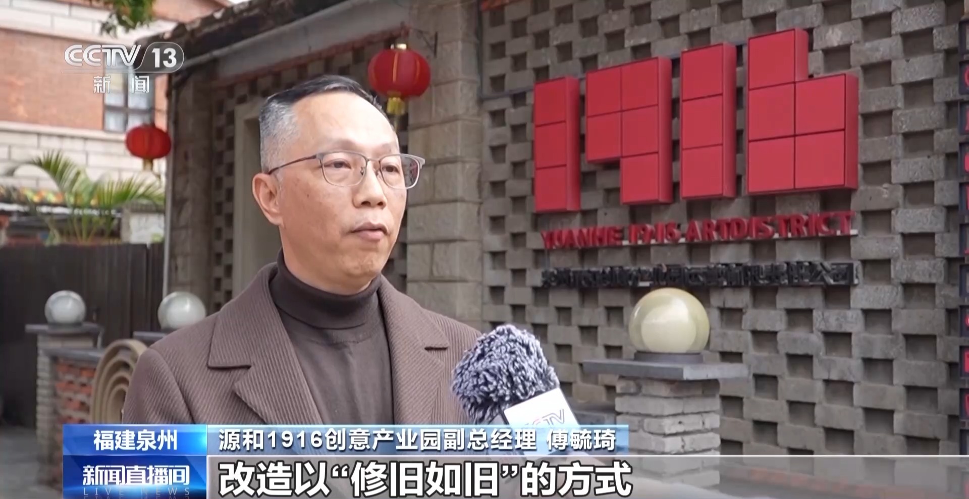 源和1916创意产业园副总经理 傅毓琦:改造是以“修旧如旧”的方式保留了原来的一些建筑遗迹,让大家可以感受到里面的原有老建筑,又能感受到现在新的东西。
