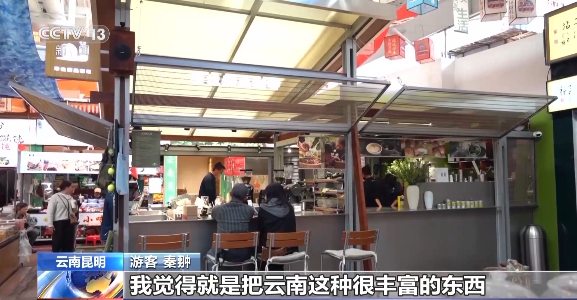 游客 秦翀:我觉得把云南很丰富的东西都融在了一起,因为云南的风物特别多,所以这里有很多奇奇怪怪的植物,然后还有吃的东西,很有意思。