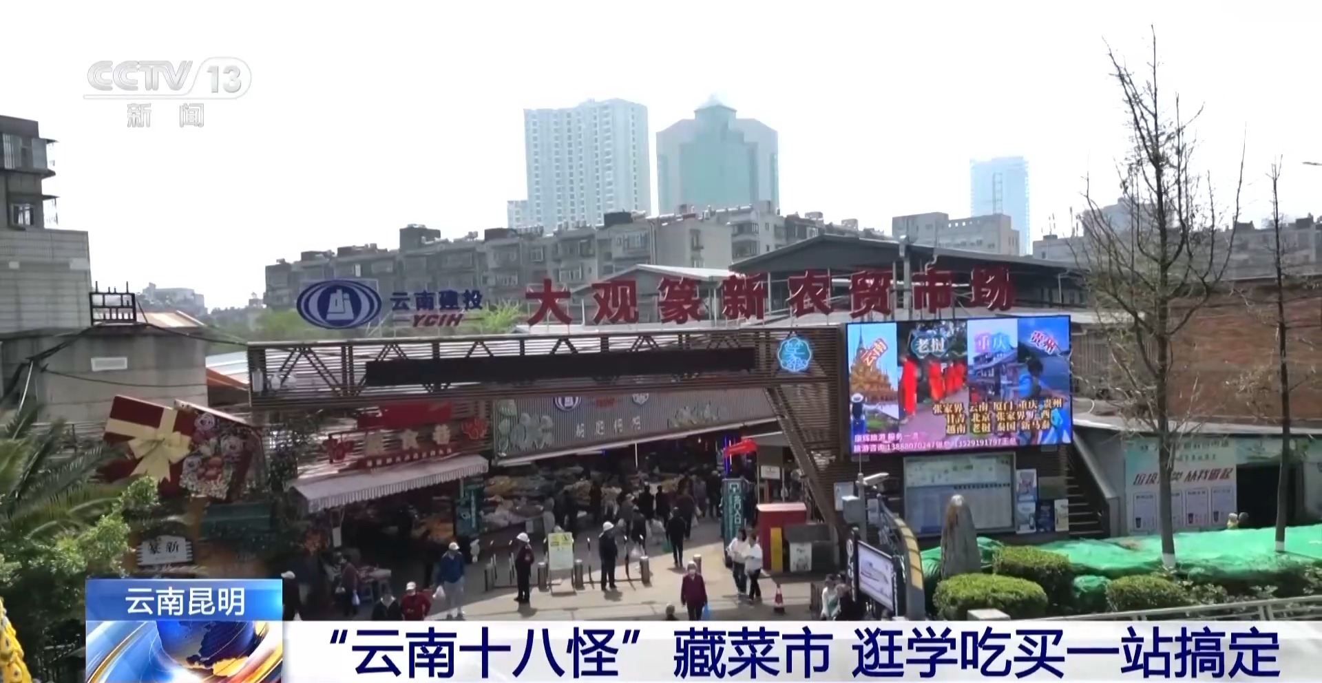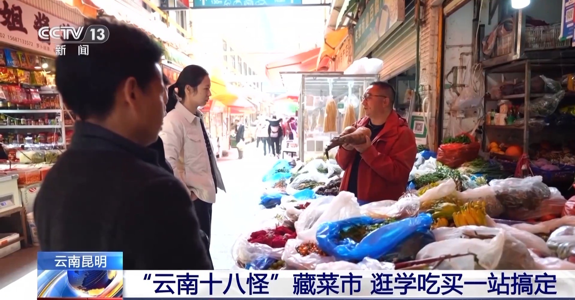 总台记者 郭思琪: 一走进菜市场,扑面而来的就是各种美食的香味儿,道路两边都有很多地道的滇味小吃。